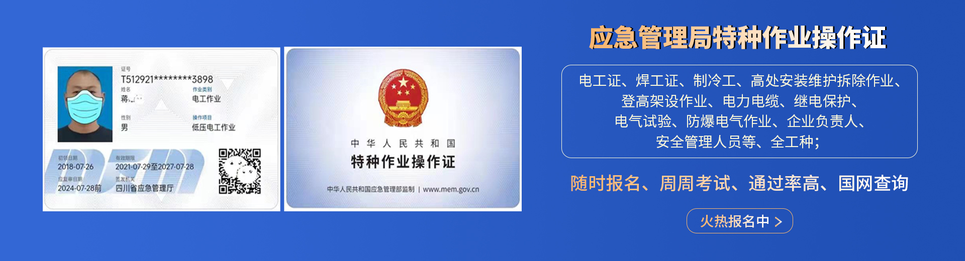 電工證,焊工證,登高架設(shè)證,高處安裝維護拆除證,電力電纜證,繼電保護證,電氣實驗證,防爆電器作業(yè)證,制冷工證,主要負(fù)責(zé)人證,安全管理人員證